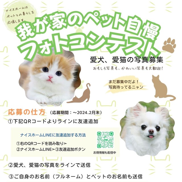 ナイスホームではただいま、ペットフォトコンテストを開催しております。(2月末まで)