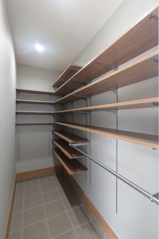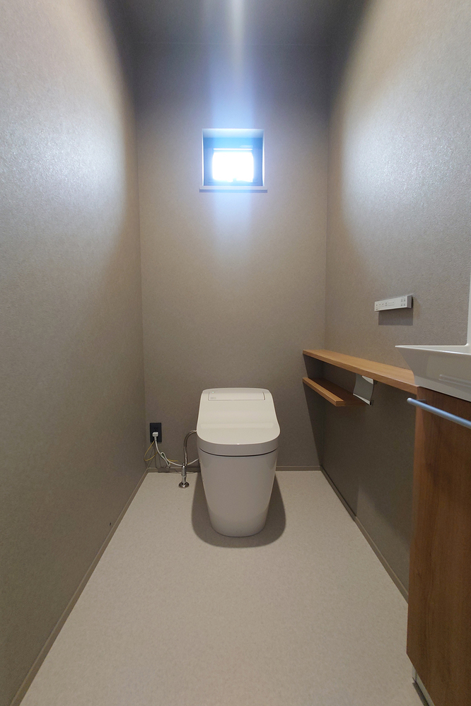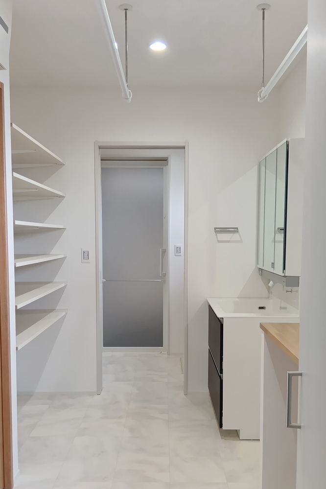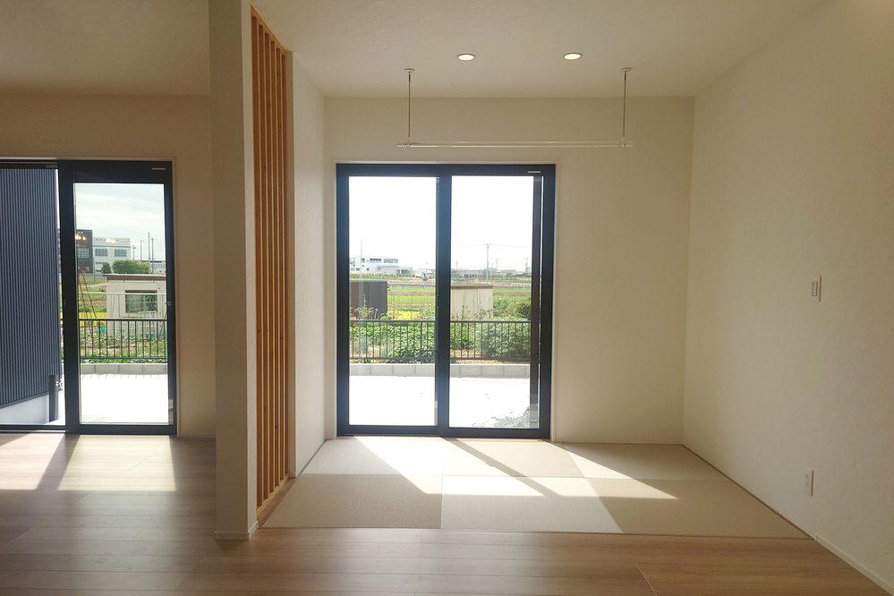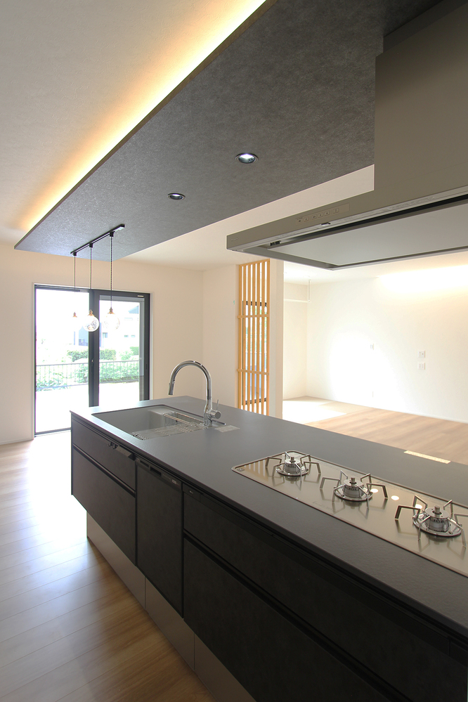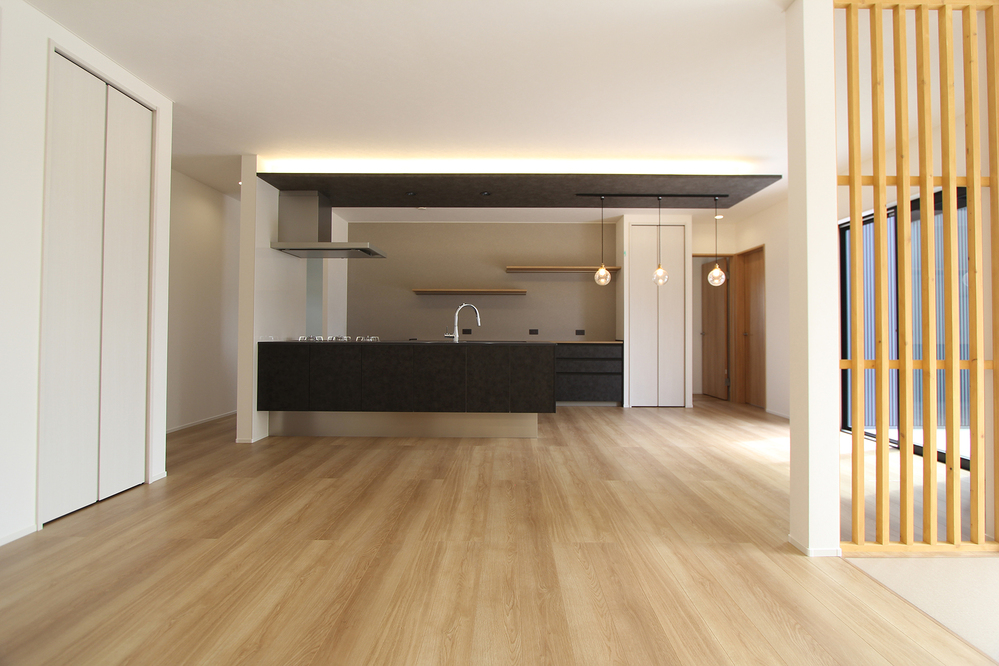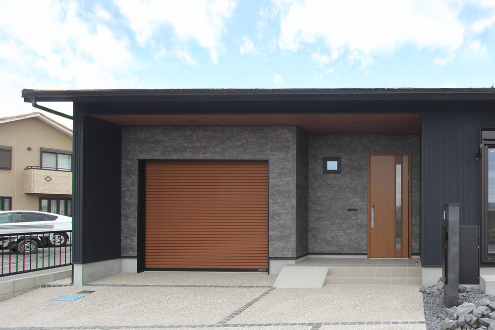 のどかな住宅街に建つ、ガレージ付き33坪の平屋(坪数:ガレージを除く)。広々とした26帖のLDK&畳コーナーで家族がゆったり過ごせるほか、洗面・ランドリーやウォークインクローゼット、浴室までスムーズな動線を確保。黒やグレー、ブラウンを基調にしたモダンなデザインで、落ち着きとスタイリッシュさを両立しました。ガレージは愛車だけでなく趣味のスペースにも活用可能。駐車場やお庭も広く、毎日の暮らしにゆとりと楽しさを添える住まいが完成しました。