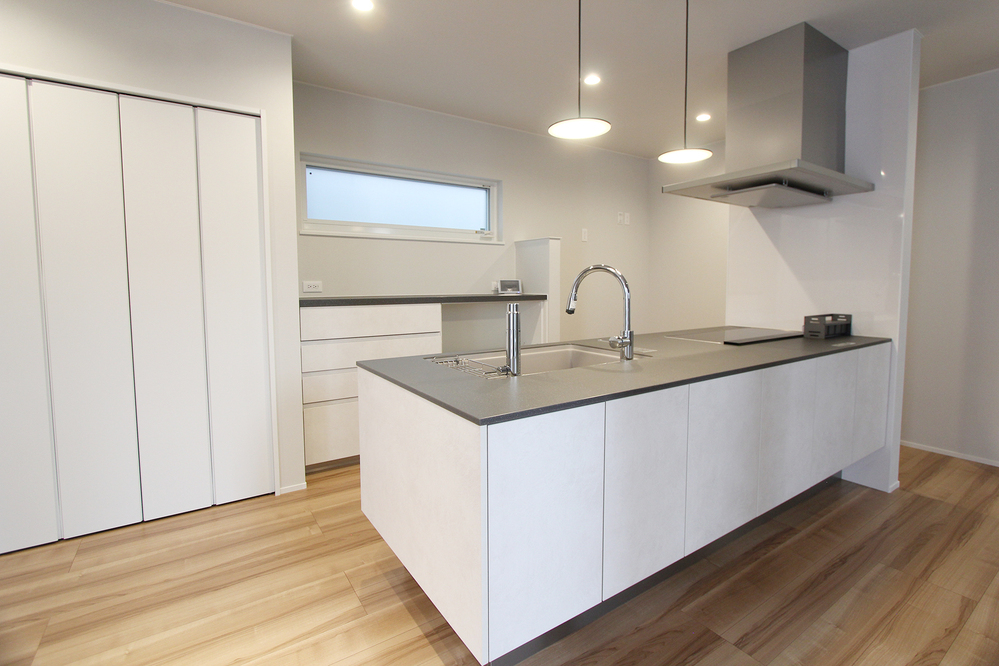 グレー×ホワイトでまとめた洗練されたホテルライクな平屋住宅が完成しました。