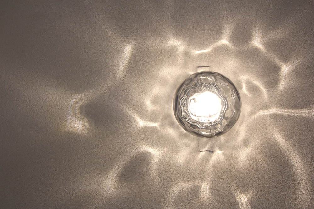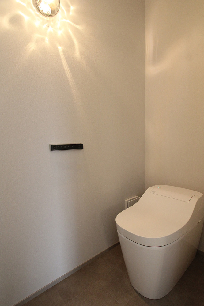 トイレには、印象的なスモークグレーガラスのオーデリック製の照明を。水面のようなゆらめきが洗練された華やかな空間を演出してくれます。